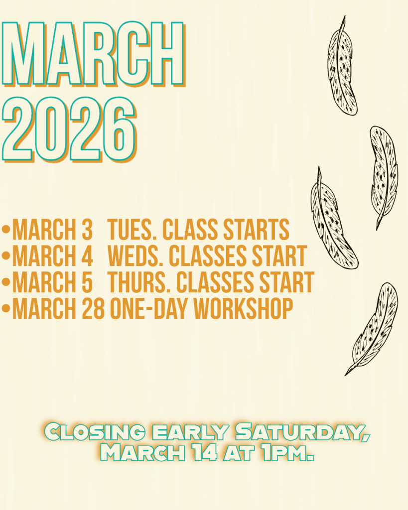 We are closing early Saturday, March 14 at 1PM. We will be closed Friday, April 3 – Monday, April 6, 2026, for Easter Weekend. We will also be closed Friday, April 17 – Monday, April 20 so our team can attend the Glass Craft and Bead Expo.